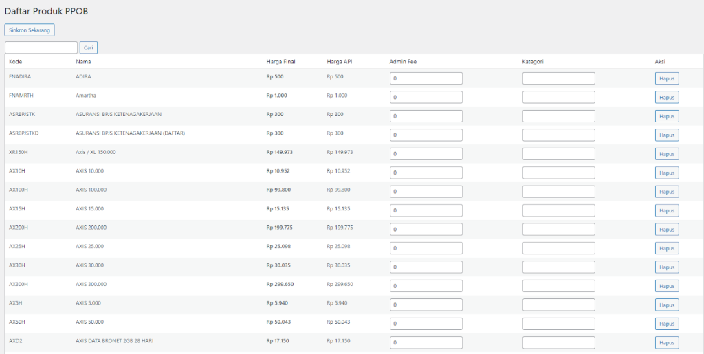 4.  Agar bisa melakukan transaksi yang perlu diakukan selanjutnya adalah harus mempunyai saldo pada API dan mengisi atau menambahkan biaya admin untuk keuntungan yang akan diambil dari setiap produk untuk setiap transaksi di website anda